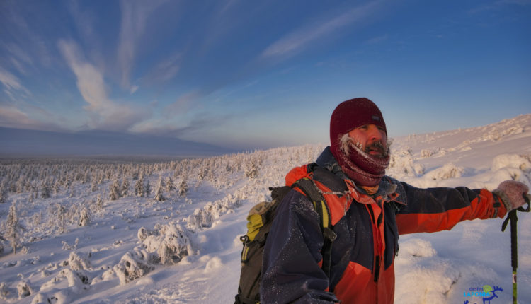Hace un par de días salí a una excursión por el parque nacional, con mi amigo Hugo, otro asturiano que vive por aquí, esquís, mochila con un bocata de chorizo de pamplona, colacao calentito en un termo, chocolate, gps por si las moscas y un montón de ropa, ya que estábamos a –20 y en la tundra siempre sopla el viento por lo que la sensación térmica es mucho más fría, creo que la sensación térmica daba –28.